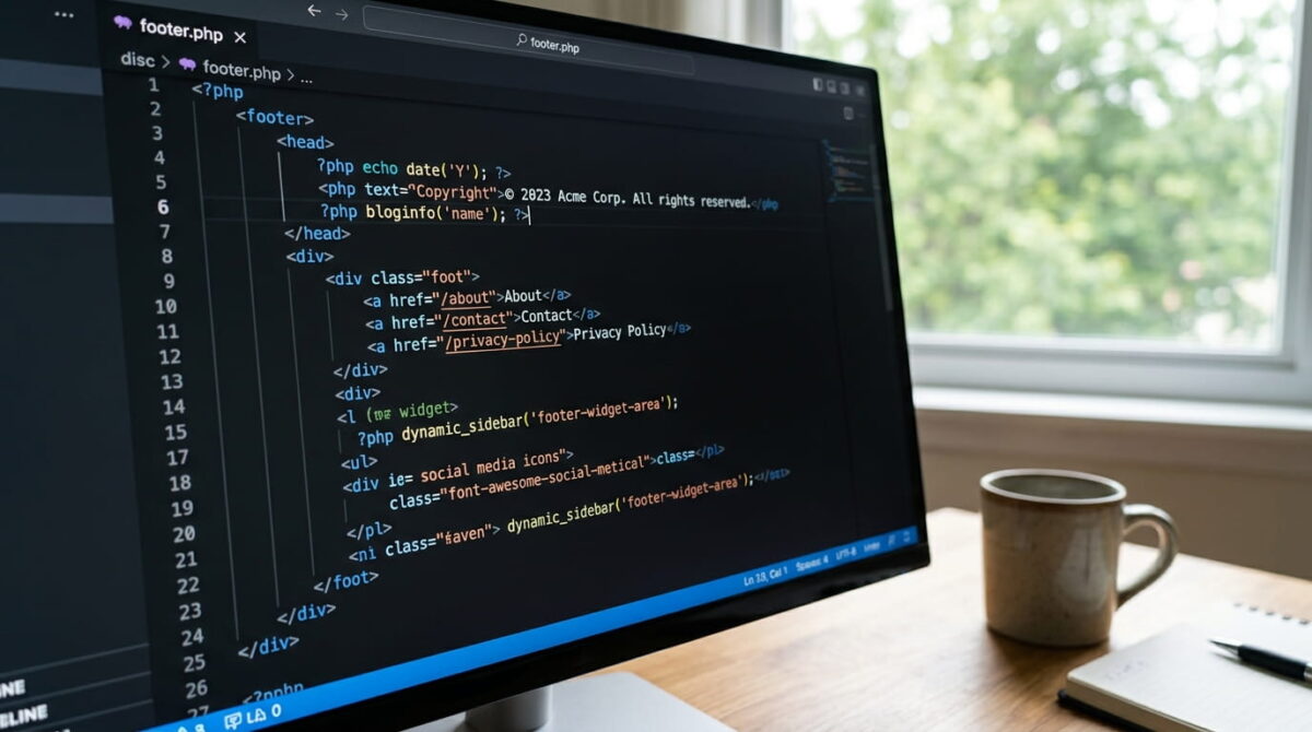 Чтобы изменения не сбросились при обновлении темы, создайте дочернюю тему и переопределите footer.php.